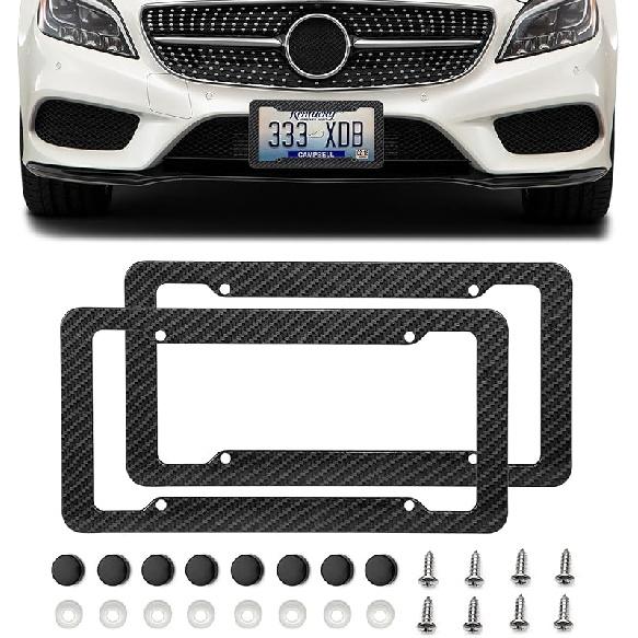 2PCS Carbon Fiber License Plate Frame, Waterproof Plastic Number License Plate Cover, Car Accessories Licence Plates Frame Holder with Fasteners and