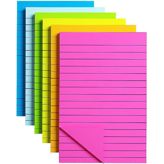 6 Pads Lined Sticky Notes Post,4x6 Inches,Super Stick it ,Bright Color ,45 Sheets/Pads, Self-Adhesive memo for School , Office & Home, Multicolor