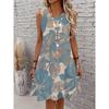 Elegant Light Blue Floral Print Sleeveless Dress Women's Summer Hawaiian Vacation Dress Tank Dress Y2k Ladies Clothes Girl Tops