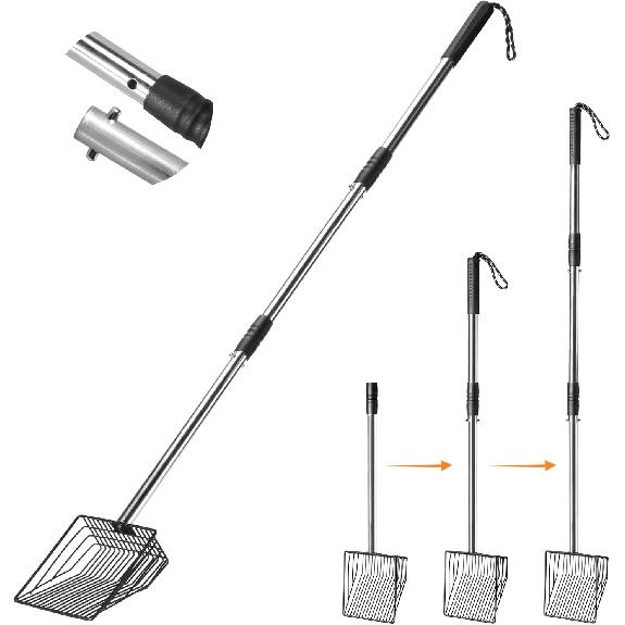 Included Components: 1 poop scooper, 3 Handle extension piece.