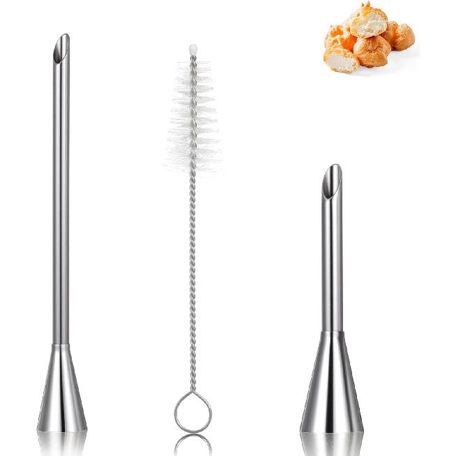 【What’s Included】 You’ll receive 1 small puff mouth tip, 1 long puff mouth tip, and 1 decorating cleaning brush—filling piping tip help you need to pipe, fill, and clean with ease, allowing you to create a wide variety of beautifully crafted pastries and desserts.