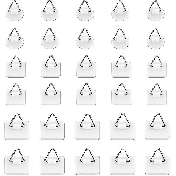 30pcs Adhesive Plate Hangers Invisible Vertical Wall Art Display Holder,Picture Hangers Without Nails,Photo Fram Sticky Hanging Hooks,No Wall Damage