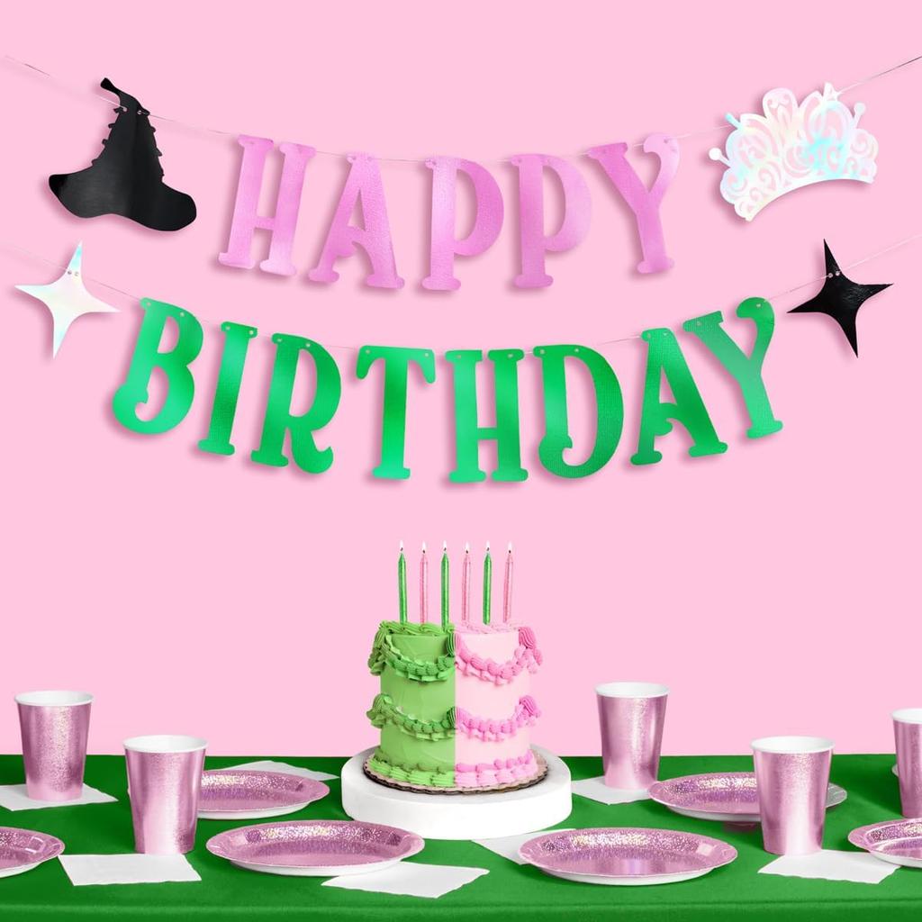 xo, Fetti Happy Birthday Banner - Pink + Green Foil, 4 Ft. | Witch Birthday Decorations, Girls Bday Sign, Kids Wizard Party, Photoshoot Backdrop