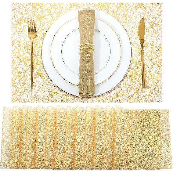 12 Pcs Gold Disposable Placemats Bulk 12 x 18 Inch Gold Doilies Metallic Glitter Rectangle Foil Placemats Table Decoration Dining Place mats for