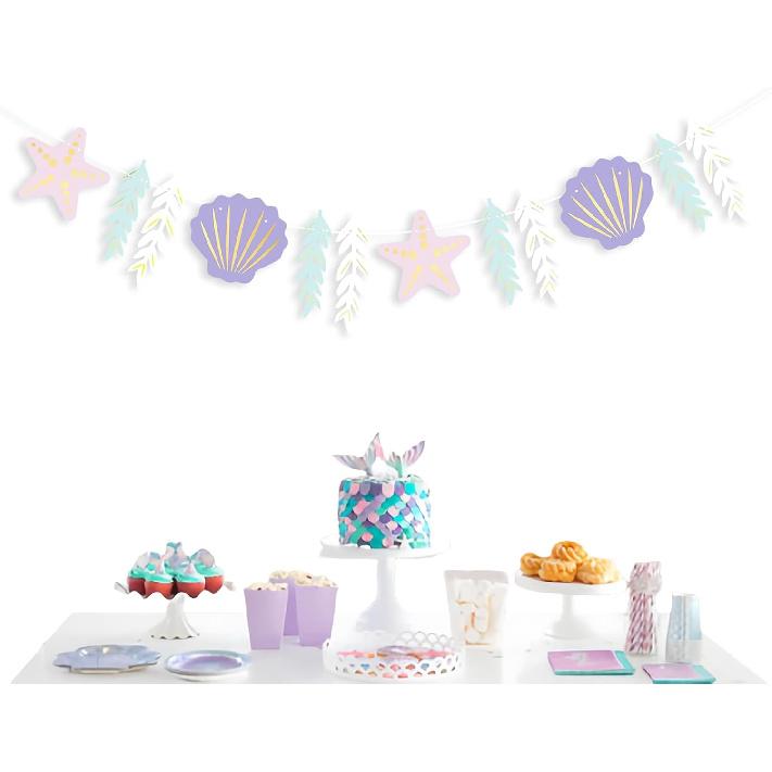 Pre-Strung Starfish Sea Shell Banner For Under The Sea Mermaid Birthday Party Decorations Ocean Coastal Nautical Bachelorette Beach Wedding Garland