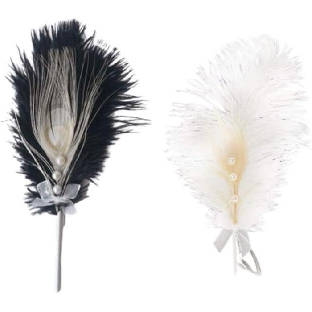 2pcs Plumage Cake Topper with Pearl Romantic Aesthetic Ostrich Plumage Feathered Cake Decorartion for Birthday Wedding