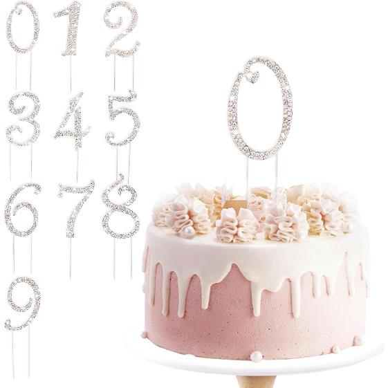 BEIDHIA Number Cake Topper 0-9,Silver Bling Rhinestone Happy Birthday Cake Topper for 10th 20th 30th 40th 50th 60th 70th 80th 90th Birthday Party