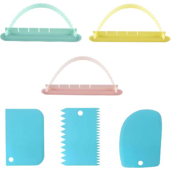 Set Contents: The curved ruler is approximately 9.8 inches long, and the straight ruler is 6.9 inches long. Both are made of 2mm-thick, high-quality plastic for optimal flexibility and durability. This set includes a variety of tools, typically including three curved guides and three scrapers, offering excellent value and a wide range of uses. These compact and lightweight tools easily store with other baking supplies for easy portability, making them convenient for classroom learning, events, and even cooking in the kitchen