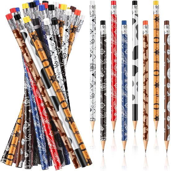 Safe and Sturdy: our cowboy party pencils are made of quality wood and graphite materials, with rubber erasers fixed to the top, safe and reliable to use, light yet sturdy, with a smooth surface, comfortable to grip and hold in hands, not easy to break, offering you a smooth writing experience
