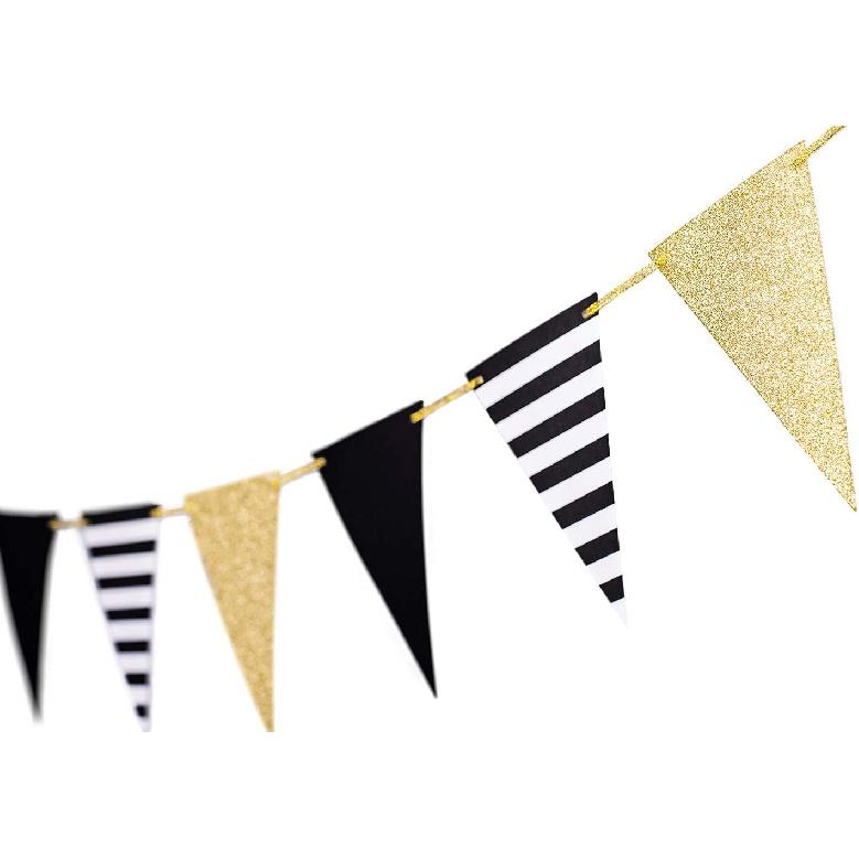 Golden Black Triangle Banner Decorations New Years Pennant Bunting Signs Decoration for Birthday Gatsby Party Nursery Anniversary Graduation Decor