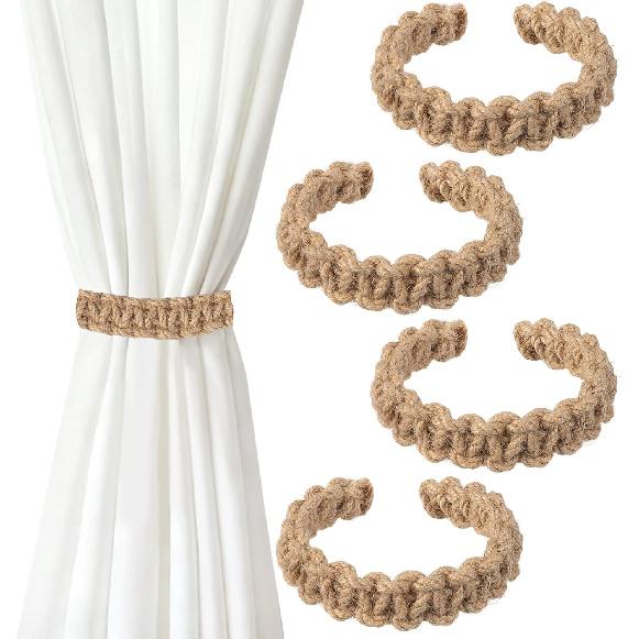 4Pcs Bohemian Braided Curtain Hooks Outdoor Curtain Tiebacks Curtain Ties Elegant Rustic Curtain Holdbacks Tie Backs Accessories Suitable for Home