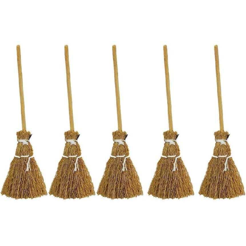 5 Pcs Witch Broomstick Set - Miniature Broom Props, Fairy Decoration, Cinnamon Broom, with White Ropes Halloween Straw Craft Decoration Witches