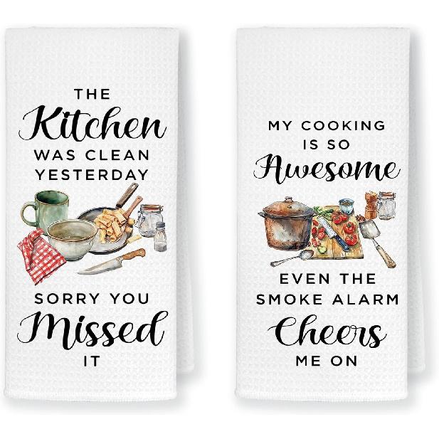 HONLUNG Funny Kitchen Towels Set of 2, Funny Gifts for Hostess Dish Towels Drying Cloth for Kitchen, Sarcastic Housewarming Gifts for Women
