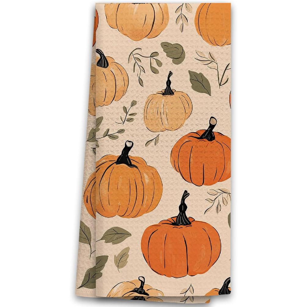 TNUW Vintage Fall Pumpkin Hand Towels, 16x24In, Thanksgiving & Harvest Decor, Botanical Pattern for Farmhouse Kitchen & Bathroom