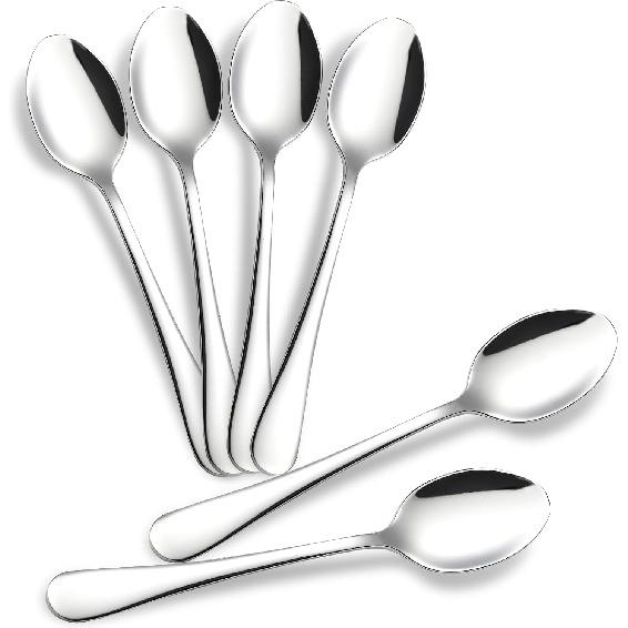 【Classic Design】The tea spoons are with ergonomic shape handle and mirror polished, smooth edge, classic and elegant design, more comfortable to use, and can easily matches various kinds of cutlery or flatware. This teaspoon set is a good choice of gifts for any holiday season, the exquisite workmanship will surely make your family and friends like it very much