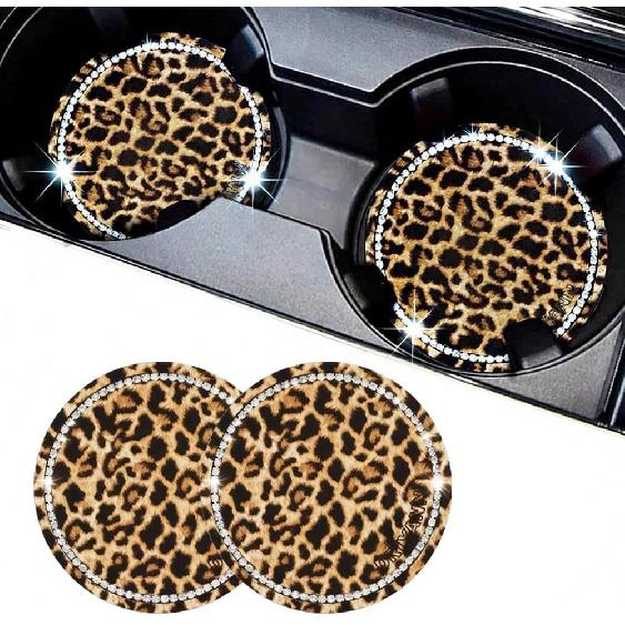 Car Cup Holder Coaster, 2PCS Silicone Car Cup Holder ert Leopard Print, 2.75" Universal Non-Slip Cup Holders, Interior Car Accessories for Women and