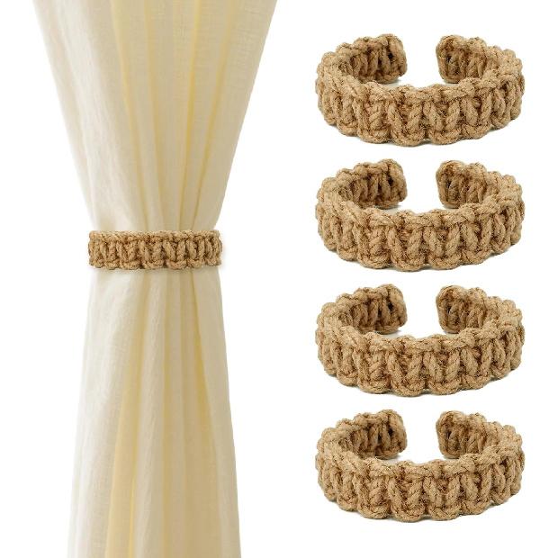 Outdoor Curtain Tiebacks, Curtain Ties (4 Pack) - Boho Braided Farmhouse Rustic Flexible Rope Drapes Holder, Burlap Elegant Light Curtain Holdback