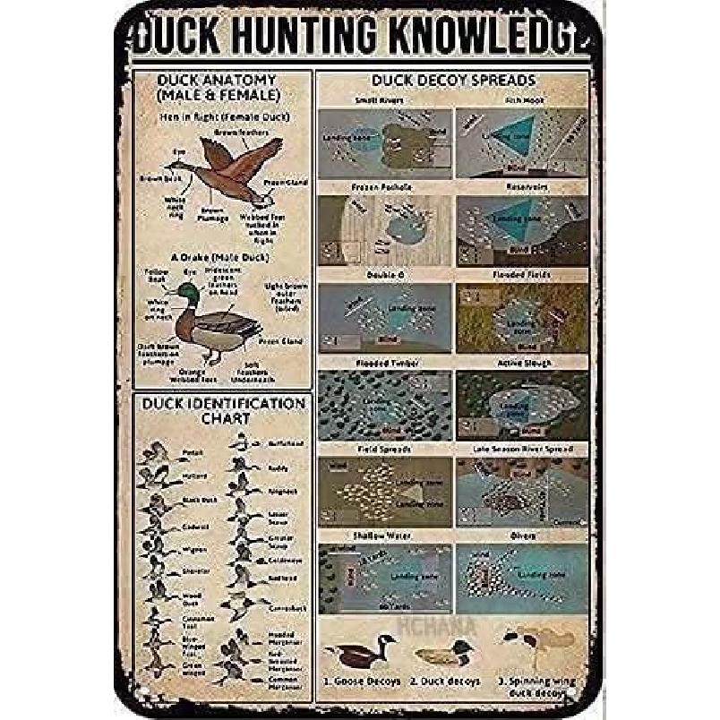 Duck Hunting Knowledge Metal Tin Sign Duck Decoy Spreads Retro Poster Hunting Lodge Bathroom Cafe Kitchen Garage Home Art Wall Decoration Plaque Gift