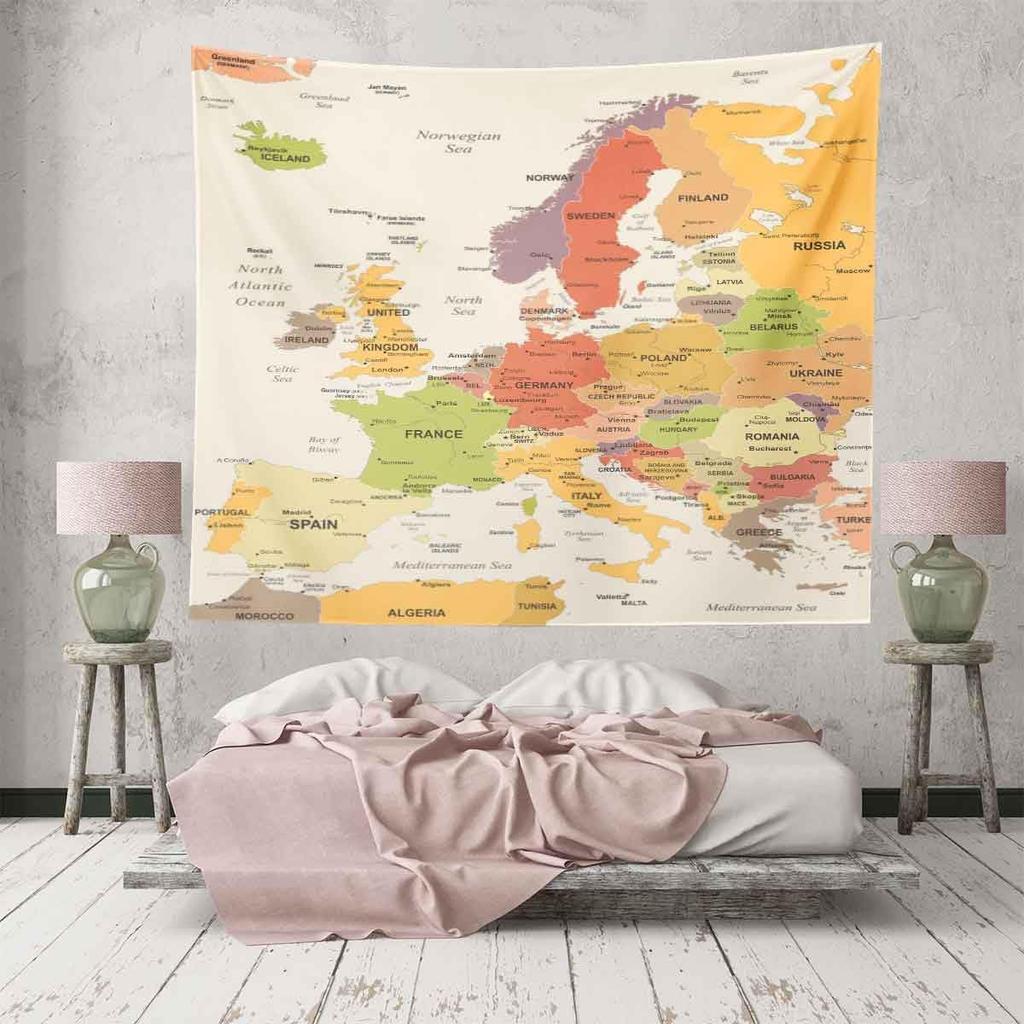 BULOR Map Tapestry Wall Hangings EU Euro Vintage Map with Countries Cities Tapestry For Kids Student Bedroom Living Room Dorm Cave Background