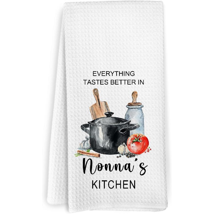 Nonna Gifts Kitchen Towels, Gifts for Nonni Grandma from Grandkids, Everything Tastes Better in Nonna's Kitchen Decorative Hand Tea Towels for