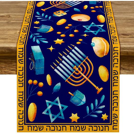 Hanukkah Table Runner Menorah Chanukah Star of David Hebrew Je Festival Holiday Kitchen Dining Room Home Decoration