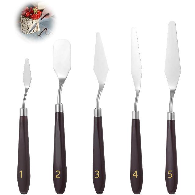 Diverse and Practical Design: The set includes five cake spatula of different shapes, suitable for a variety of scenarios such as spreading cakes, scraping chocolate, oil painting, etc., to meet the diverse needs of the cooking and art fields