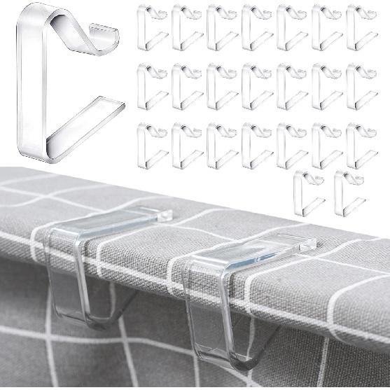 24-Pack Clear ABS Plastic Tablecloth Clips | Fits 1.3"-2.1" Table Edges | Windproof & Secure for Picnic, Camping, Party, Wedding & Restaurant