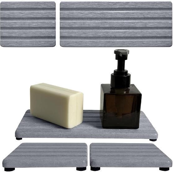Set of 3 Diatomite Hand Soap Holder, Water Absorbing Stone Tray for Kitchen Countertop, Fast-Drying Bathroom Trays(1pcs 22 x 10cm + 2pcs 10 x 10cm