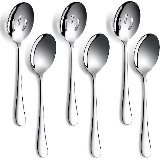 6 Pieces Serving Spoons Set, 8.7 Inch, Includes 3 Serving Spoons and 3 Slotted Spoon, Large Stainless Steel Buffet Banquet Utensils Cutlery Set for