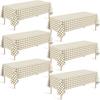Easy to Use:you just need to unfold these beige plaid tablecloths up on table then you can use it,if these plastic disposable khkai tablecloth gets dirty,you can clean it with cloth or paper easily.or you can throw it directly after your party,no need to worry about cleaning up.