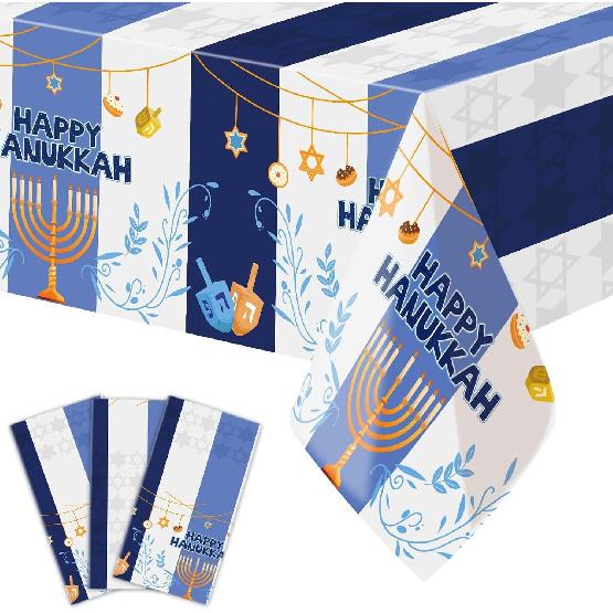 Fancy Land 3Pcs Hanukkah Tablecloth Happy Hanukkah Disposable Plastic Table Cover Blue and White Chanukah Decorations with Menorah Star of David for