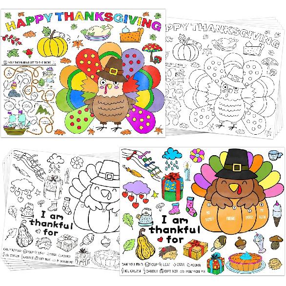 Thanksgiving Coloring Placemats 16PCS 14''x11'' Fall Thanksgiving Placemats for Kids to Color Thanks Giving Paper Table Mats Disposable Place Mats