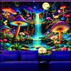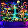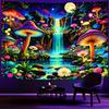 Ine Ive Blacklight Fantasy Mushroom Forest Tapestry Aesthetic UV Reactive Waterfall Tapestries 60x51Inch Moon Night Wildflower Plant Landscape Black