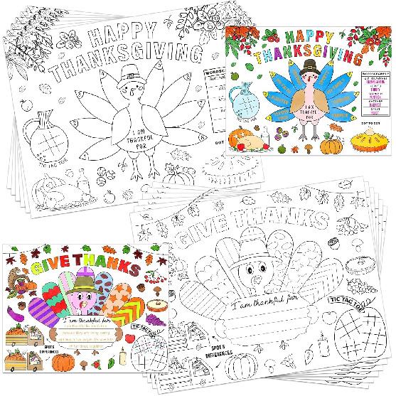 Thanksgiving Coloring Placemats for Kids 16PCS Fall Paper Placemats for Kids to Color Thanksgiving Paper Table Mats for Thankful Craft Activity