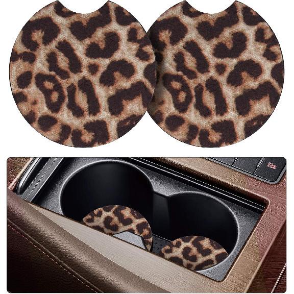 tifanso Car Cup Drink Holder Coaster, 2 Pack Car Coasters for Cup Holders, Cute Vehicle Accessories for Women and Girl (Leopard)