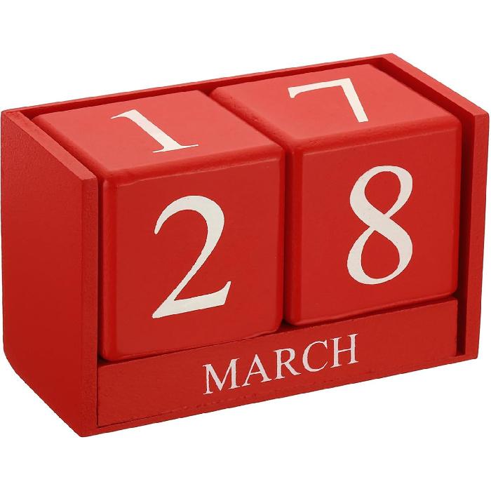 PATIKIL Vintage Wood Block Perpetual Calendar, Reble Wooden Month Date Display Blocks for Desk Office Home Decoration 6.1", Red
