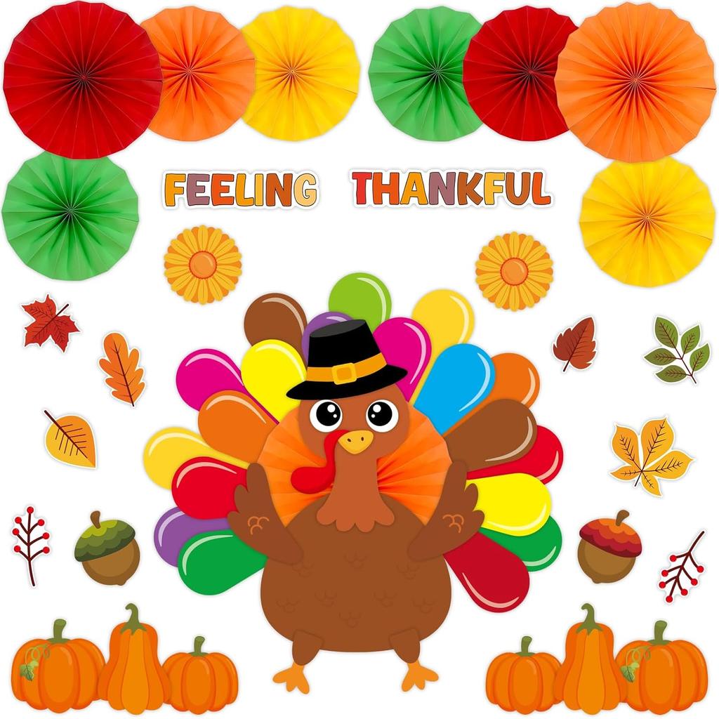 Ceiba Tree Thanksgiving Bulletin Board Decorations with Paper Fans Thankful Turkey Bulletin Board Classroom Decorations Set Leaves Pumpkin Cutouts