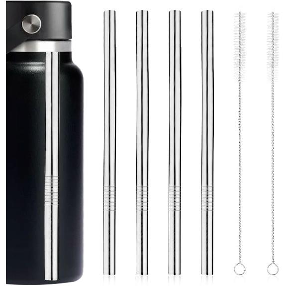 4pcs Metal Straw Replacement for Hydro Flask 32oz Wide Flex Straw Cap Bottle, Stainless Steel Cup Straws with 2pcs Brushes Parts Accessories