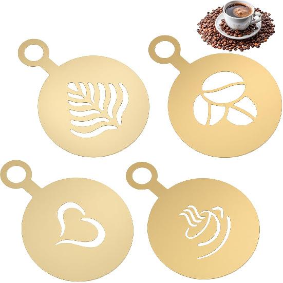 4 Pcs Stainless Coffee Stencils Latte Art,Latte Art Stencils,Lattes Stencilss with Various Patterns for Cappuccino Chocolate Lattes Cake Decorating