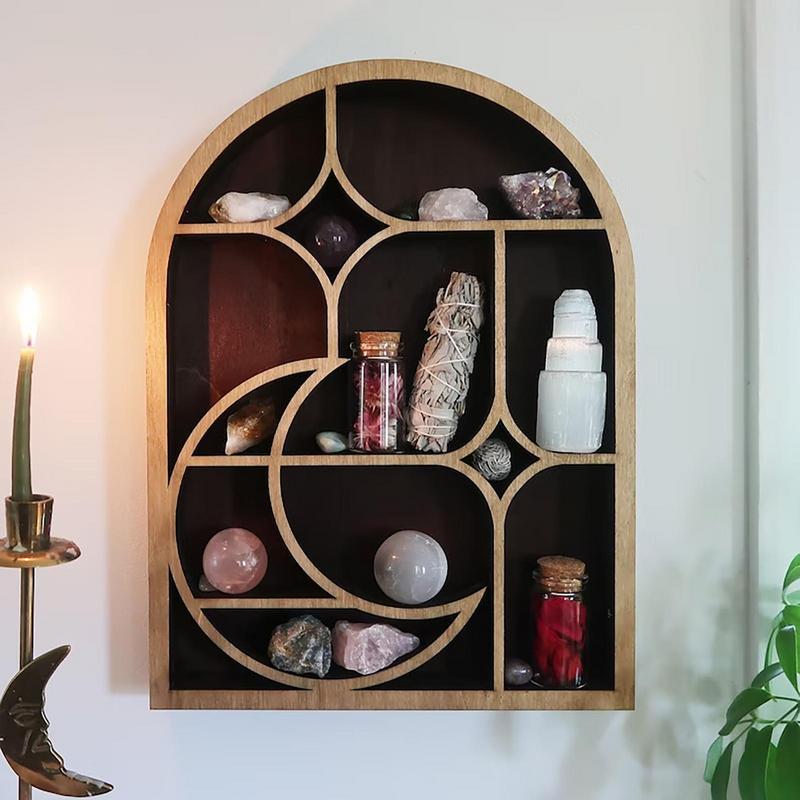 Arch Crystal Shelf Wooden Mushroom Moon Shelf Wall Mounted Storage Rack Hanging Moon Shelves Wall Decor For EssentialOil Nurser