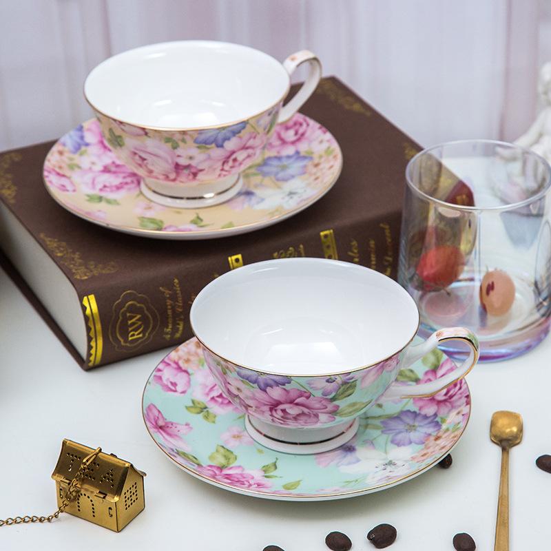 Tea Cup and Saucers Floral Tea Cups with Gold Trim Porcelain Bone China Teacup Coffee Cappuccino Espresso Latte Mugs for Party