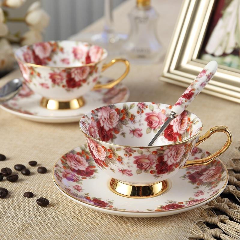 2025 Flowers Painting afternoon tea Coffee Cups Bone china Tea Cup and Saucer Spoon Set Advanced Porcelain Mug for Gifts