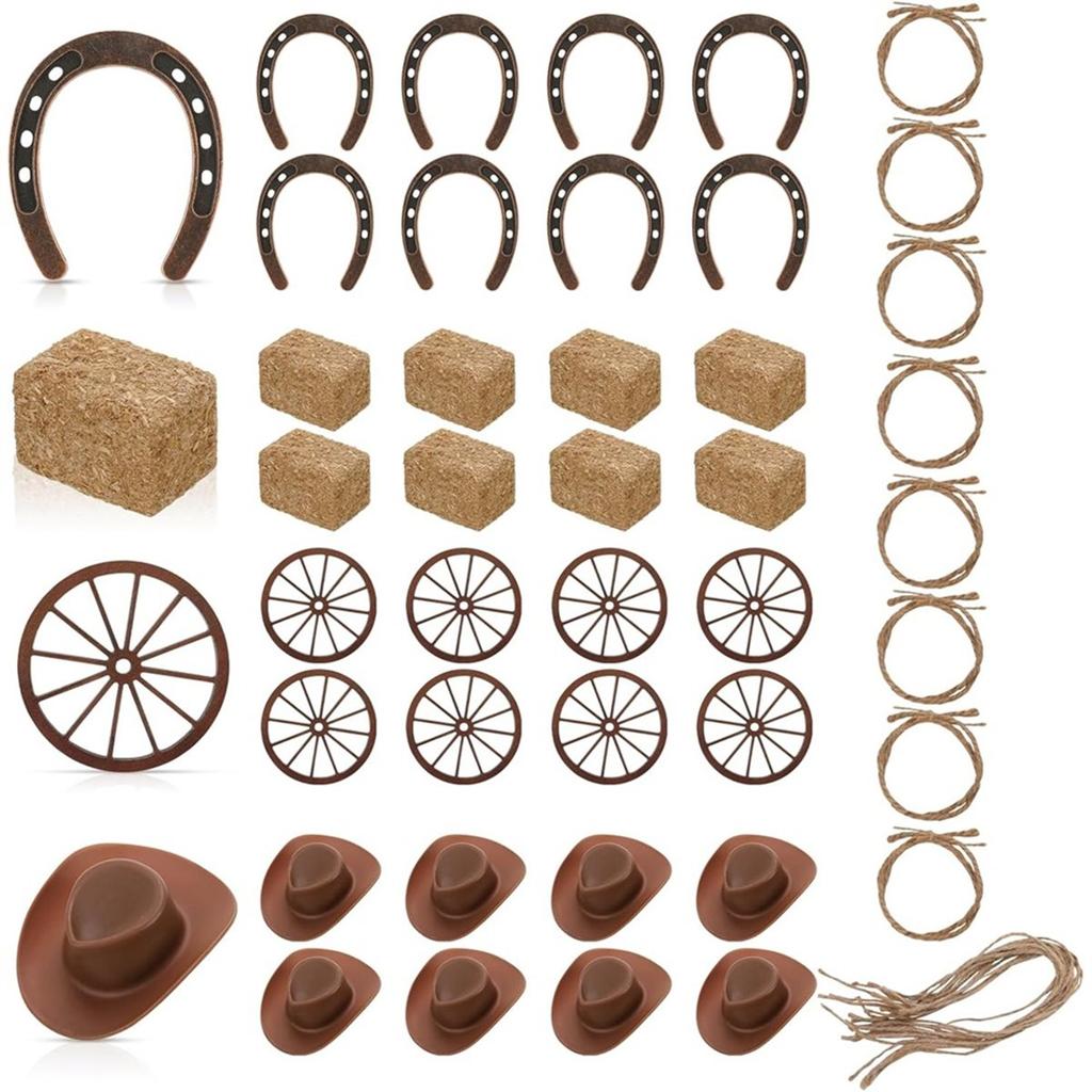 40 Pcs Western Party Centerpieces for Table Mini Cowboy Hats Mini Horseshoes Wagon for Western Cowboy Party Decorations