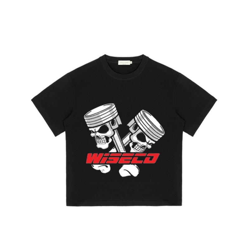 Men's Oversized T-Shirt Black WISECO Piston Skull Graphic Print Streetwear Casual Wear