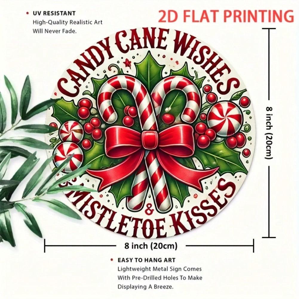 Vintage Rustic Metal Wall Decor Round Sign Holiday Home Decor Candy Cane Wishes Iron Art