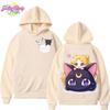 Sailor Moon Cute Cat Usagi Hoodie Autumn Winter Kawaii Anime Print Sweatshirt Loose Casual Hooded Coat for Women