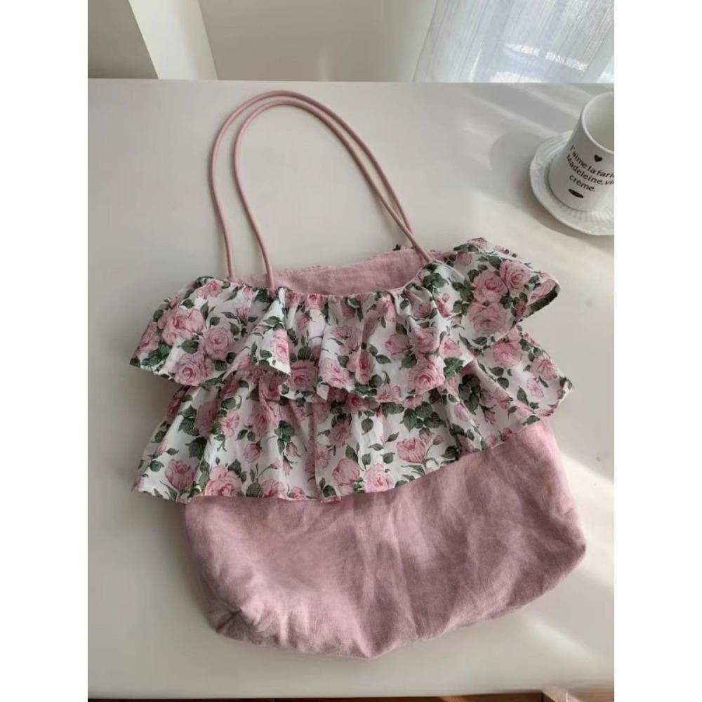 2025 new skirt flower bag niche design sense literary retro canvas bag versatile single shoulder portable tote bag