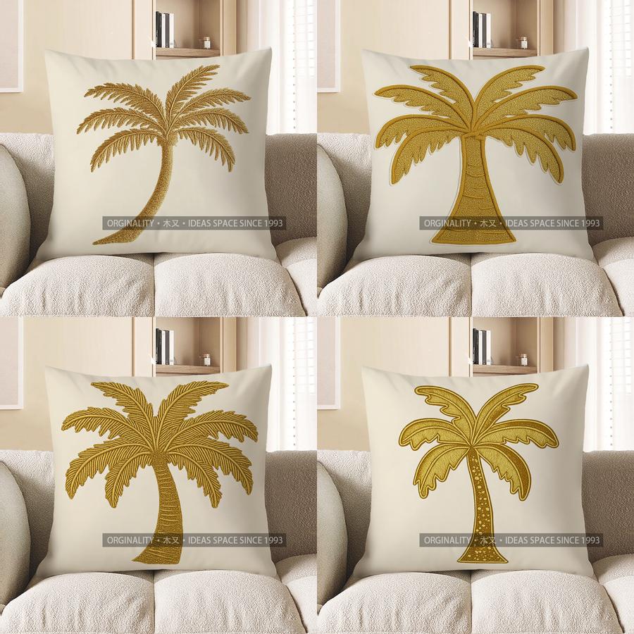 Home Decor Golden Palm Tree Pattern Decorative Throw Pillow Pattern Cushion Cover Suitable For Sofa Bedroom Car Pillow Cover
