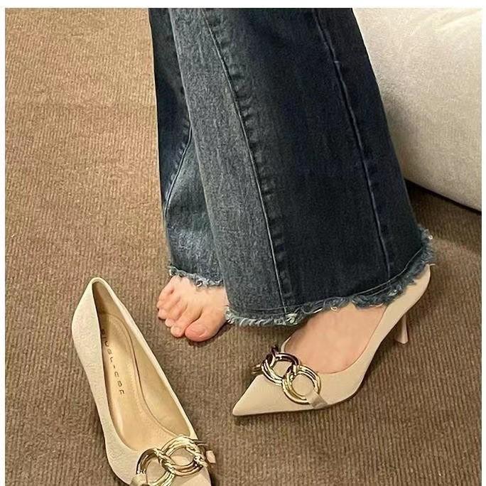 French nude high heels women's new pointed thin heels design sense niche temperament socialite small fragrant single shoes