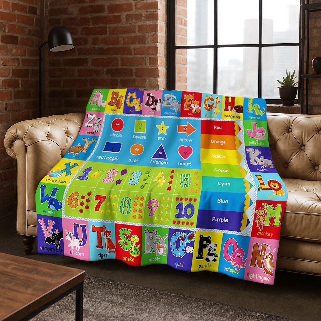 ABC Animal Alphabet Cartoon Early Educatio Children Flannel Blanket,Cozy Soft Throw Blanket for Home Bedroom Bed Sofa Cover